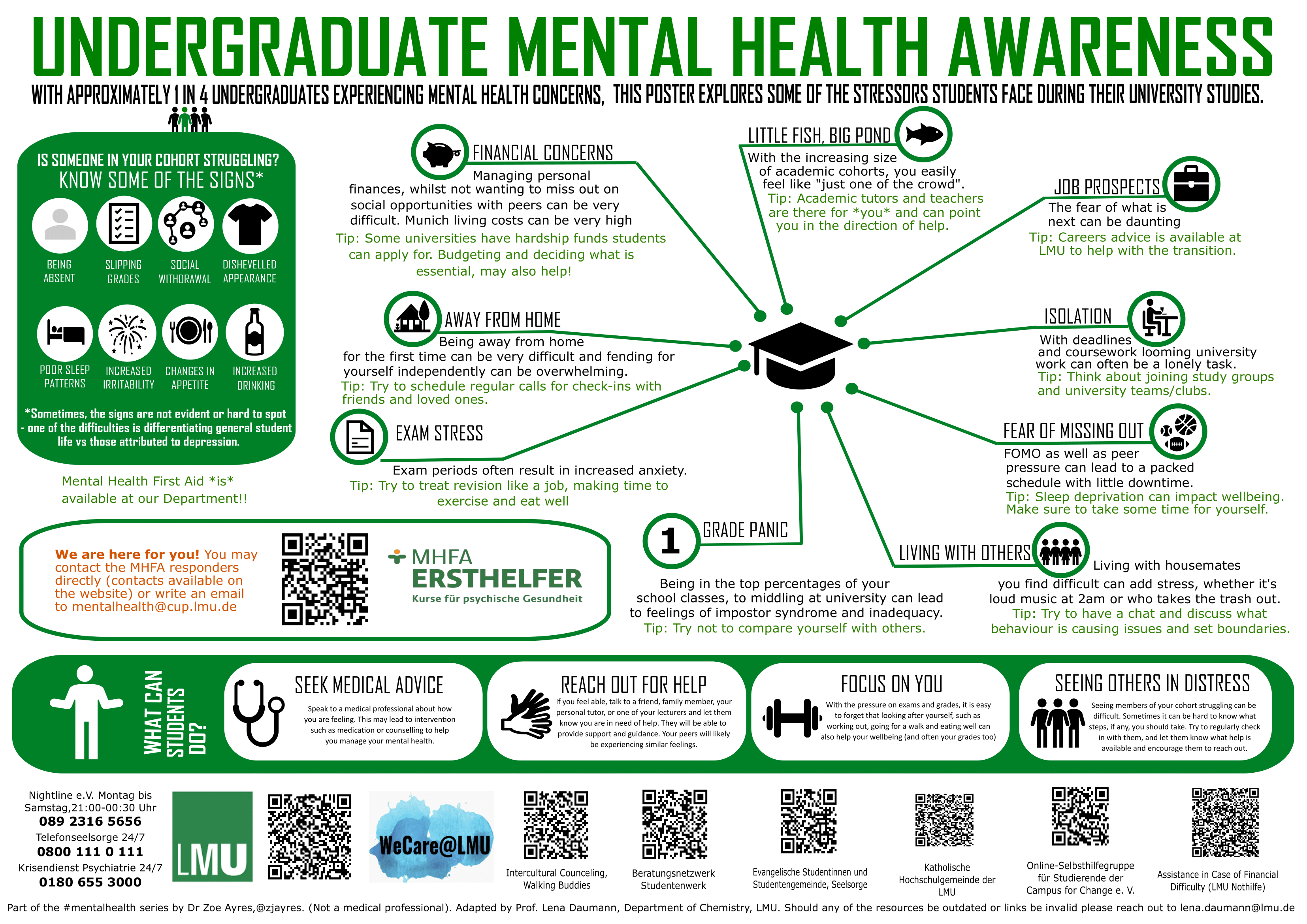 unter CUP Mental Health Initiative findet ihr die MHFA trained persons der Fakultät, sowie die Ansprechpartner zum Code of Conduct.